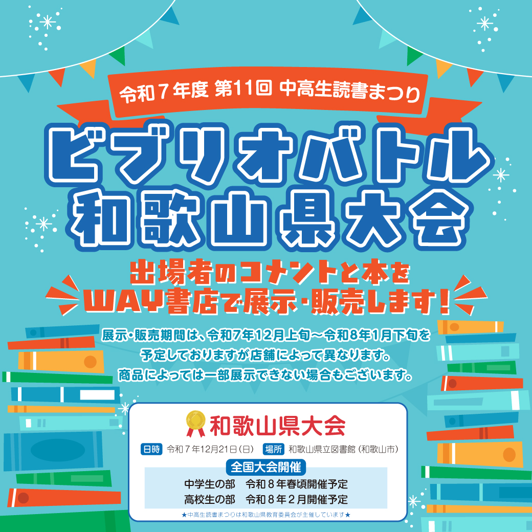 令和7年度 ビブリオバトル和歌山県大会への出場者のコメントと本をWAY書店で展示・販売します!