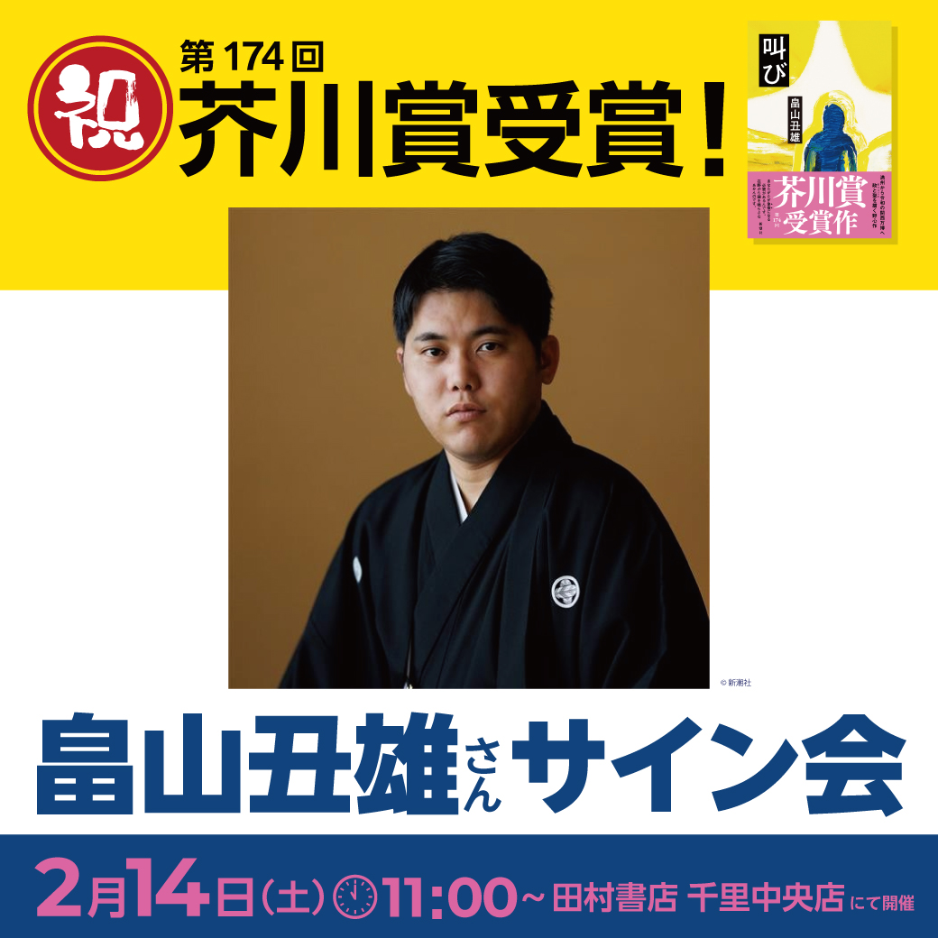 新潮社「叫び」の第174回芥川賞受賞を記念して作家・畠山丑雄さんのサイン会が【田村書店 千里中央店】にて開催されます! ●サイン会開催日時 2月14日(土)11:00 ●場所 田村書店 千里中央店にて 【受 […]