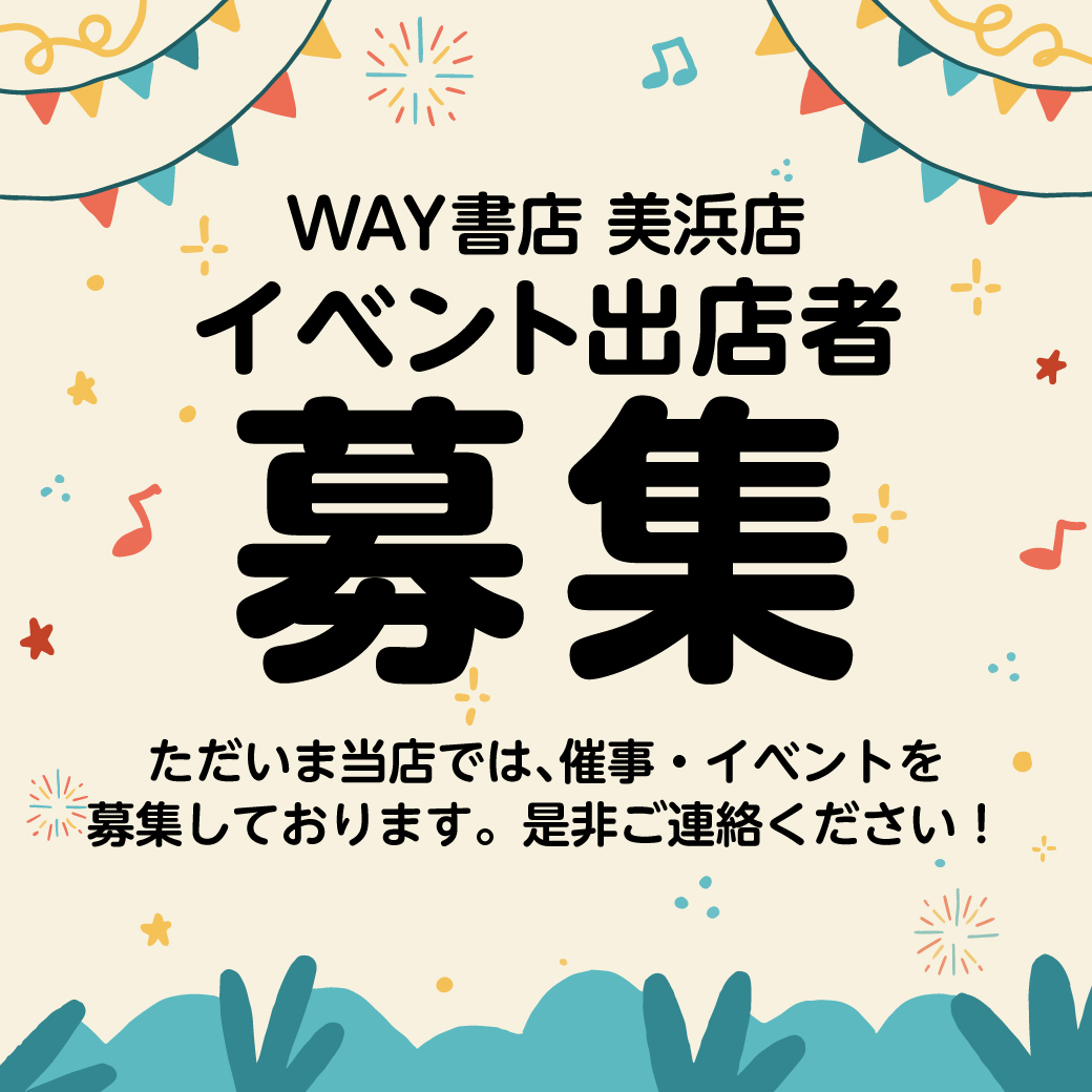 WAY書店美浜店において「催事」「イベント」を開催していただける事業者様を募集中です! 店舗にご来店してただいているお客さま、地域のみなさまが「笑顔」で「楽しめる」催事・イベントのご応募をお待ちしております! ・物販催事 […]