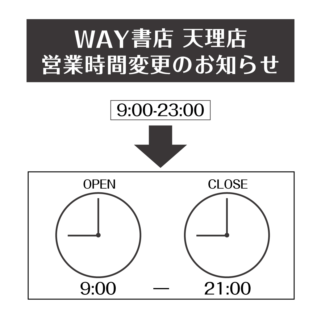 いつもWAY書店をご利用頂き、誠にありがとうございます。 誠に勝手ではございますが、WAY書店天理店はリニューアルオープン日の2026年2月4日㈬より営業時間を現在の9:00-23:00から 9:00-21:00 に変更 […]
