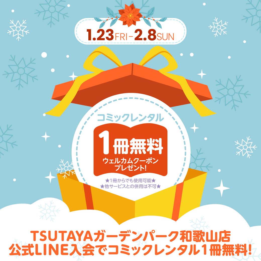 TSUTAYA WAYガーデンパーク和歌山店にて期間中にLINE友だち登録すると今すぐ使えるコミックレンタル1冊無料クーポンをプレゼント! お得なこの機会にぜひご利用ください! キャンペーン期間:1/23(金)-2/8( […]